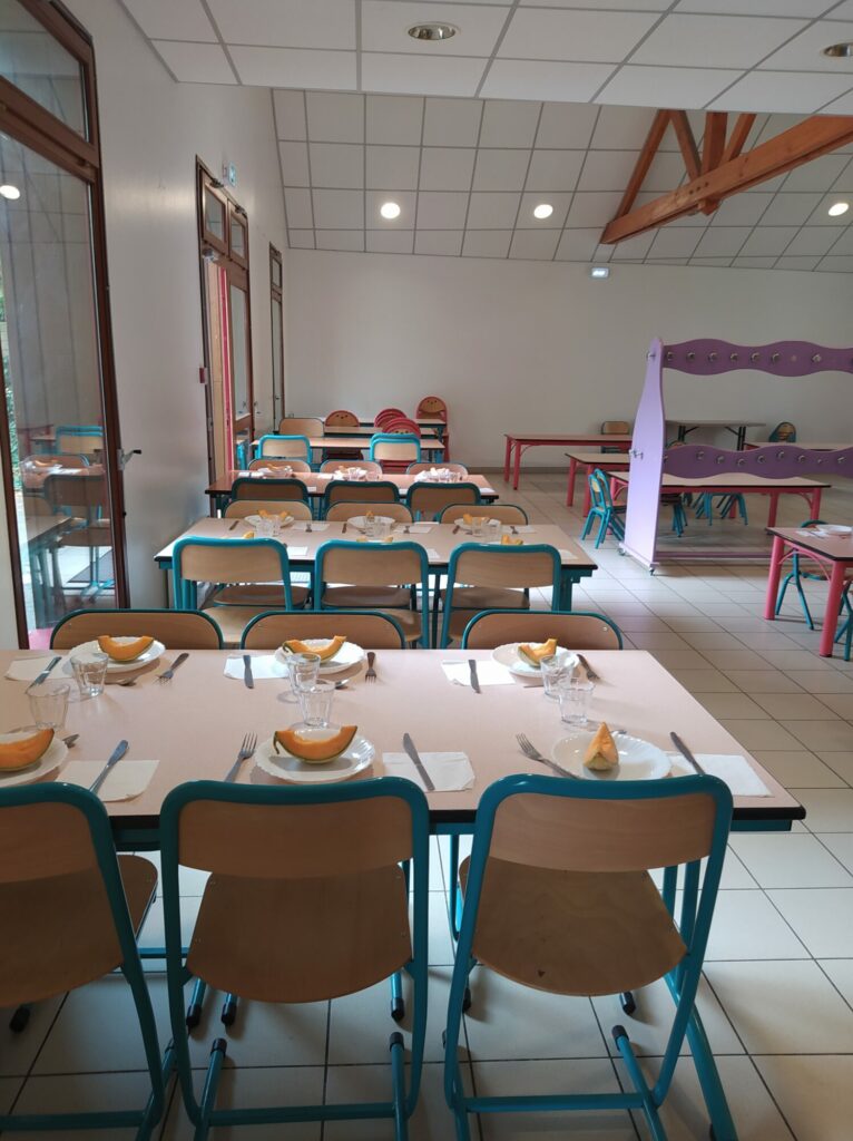 Nous ne sommes pas en mesure de confectionner les repas sur place, nous faisons donc appel à un prestataire de restauration collective: Restoria pour cette année 2025/2026. Ce dernier nous livre en liaison froide les repas confectionné dans leur cuisine centrale de Saint-Jacques-de-la-Lande.
